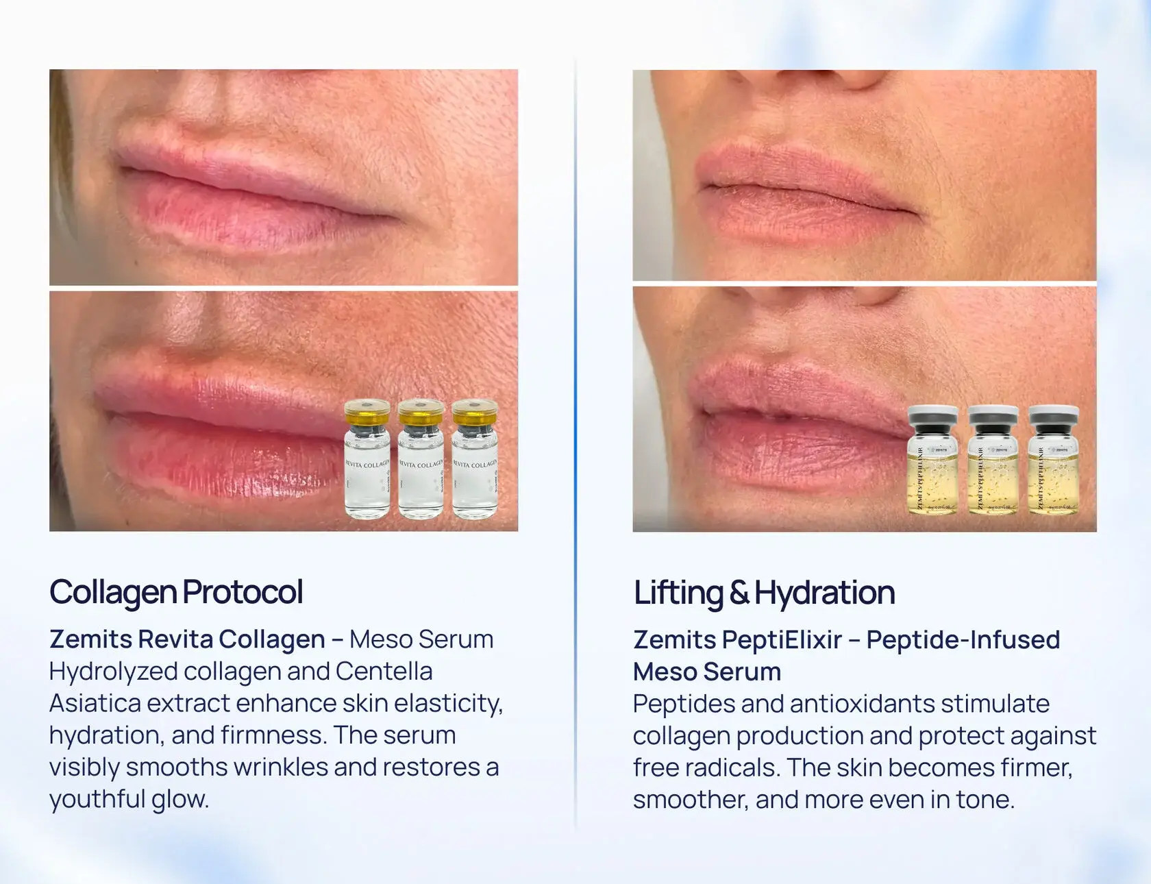 Visible change can often be observed immediately after the very first Zemits DermeBoost™ session. The treatment not only delivers deep lip hydration but also supports collagen and elastin stimulation — enhancing natural volume and overall lip quality.